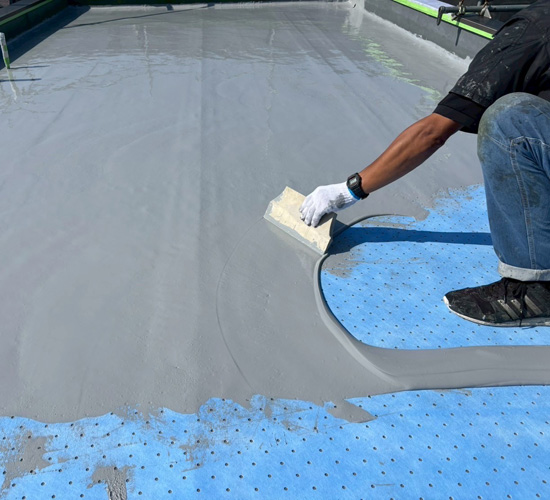 代表的な材料として「アスファルト防水」「シート防水」「塗膜防水」などがありますが、近年はメンテナンス費用を抑えるために、超寿命材料が採用される場合もあり、既存の防水層の状態や使用材料との相性、耐久性、工法の特性などを考慮して、最適な材料と工法を提案します。